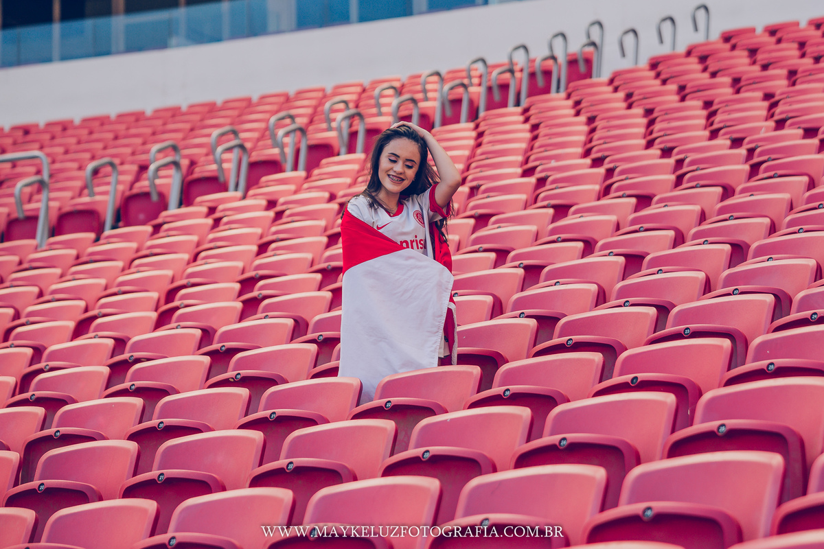 Nina é fanática pelo Inter 😍 então sem duvidas já pensamos em fazer o Book dela de 15th no Estadio Beira Rio. (Eu sempre tive vontade de fotografar lá dentro) 😊 foi um dia incrível para todos nós, e saber que essa historia que contei através das lentes elas serão guardadas por gerações 😍